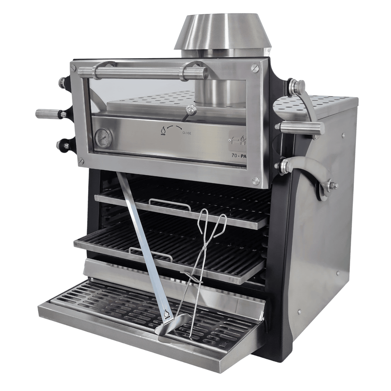Cuptorul profesional pe cărbuni PIRA 70 LUX ED cu deschidere verticală (lifting door) este proiectat pentru restaurante moderne și steakhouse-uri care urmăresc eficiență maximă, control total și productivitate ridicată în bucătărie.
